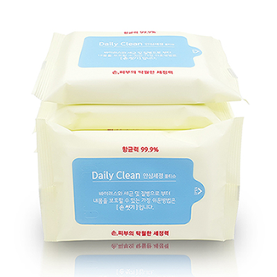 | 기타사항 | 매일매일 안심하고 깨끗하게 데일리클린 손소독물티슈 언제 어디서든 비눗물로 씻을 필요없이 간편하게 소독 바이러스로부터 지켜주는 99.9%항균물티슈 매수 : 20매 중량 : 70g 규격: 115mm x 220mm 전성분:6단계 정제수,세틸피리디늄클로라이드, 시트릭, 애씨드, 하이드록시아세토페논 저장방법 : 밀폐용기,실온 용법 및 용량 : 1매혹은 필요시 수매 상용하여 손 및 피부등을 잘 문질러 닦아낸다. 효능및 효과 : 손 및 피부의 항균,세정 |