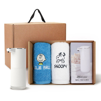 송월타올 디스펜서 기프트세트 12, 스누피 피너츠40 타올 180gx2P + 웰세스 디스펜서 360ml 1P