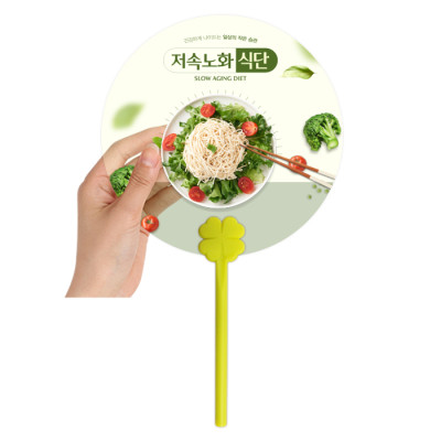 투명 원형 네잎클로버 막대팬시 (연두) 부채